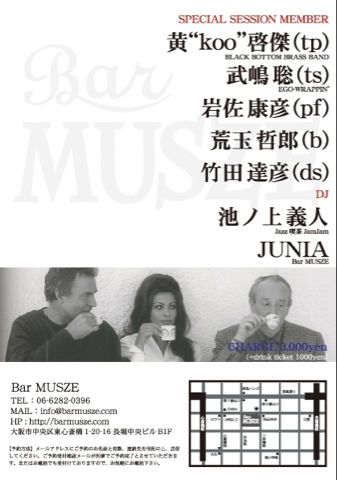 夜は心斎橋のBAR MUSZEさんでDJです。